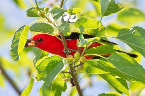 Scarlet Tanagers are reliable nesters at the summit of Old Town Hill. Photograph by Sandy Selesky.