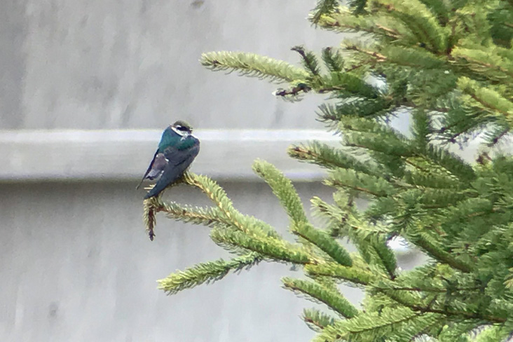 Violet-green Swallow was the first of five new species added to Maine's list in 2018. Found in Bar Harbor April 14, 2018. Photograph by Louis Bevier.