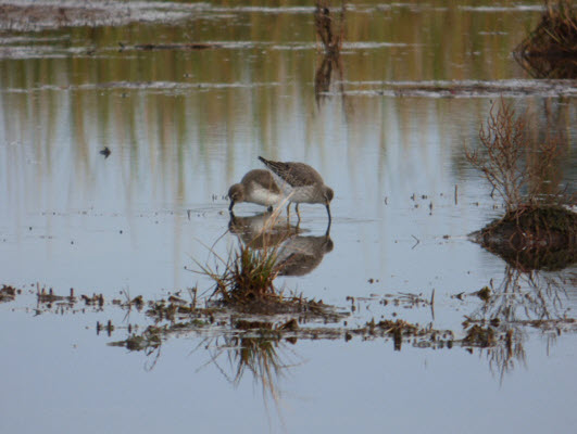 Stilt Sandpiper and Dunlin at Squantum pans next to Kennedy Center.