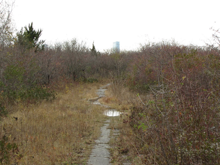 For passerine migrants, walk south along Commander Shea Boulevard for about 0.2 mile. At the wooded area, there is a path on the east side of the road that winds through young forest and the edge of the salt marsh.