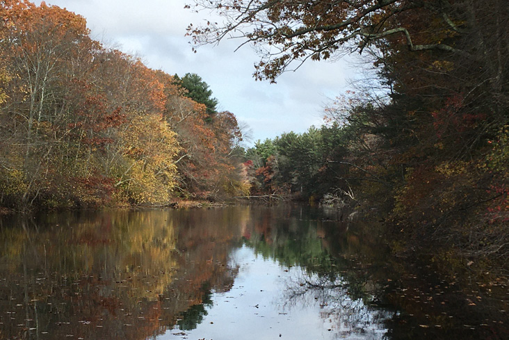 Right after you cross the bridge, you will come to the trailhead on the left side of the road. There is a faded map of the trail system. Birding directions are simple: follow the Riverside trail and stay to the left at all trail intersections to remain close to the Charles River. The trails are labeled, but most of the signs are inconspicuous. From the start of the Riverside trail to the first intersection (the Olmsted trail), the habitat is predominantly white pine forest. It looks like perfect Great Horned Owl roosting habitat. Expect to find Golden-crowned Kinglets, Black-capped Chickadees, White-breasted Nuthatches, and Dark-eyed Juncos, and hear, if not see, Red-bellied and Downy woodpeckers, and Northern Flickers. Pine Warblers are here in season. In mid-October, I was surprised to seemingly pish in a Yellow-billed Cuckoo.
