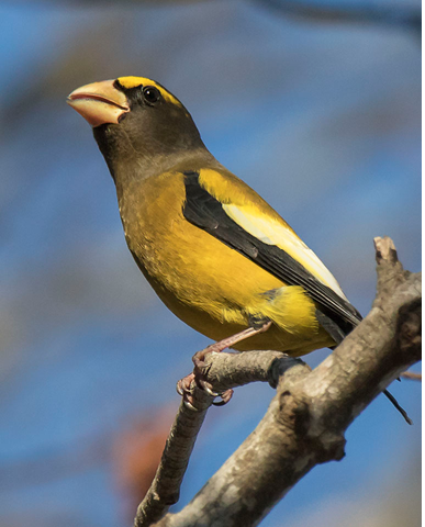 Evening Grosbeak. Photograph by Sandy Selesky.
