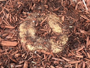 The depth of the hole in the bark mulch for each donut was just fractionally greater than the thickness of the donut, yet the donut at the end of the burying process was fully covered with mulch and not visible.