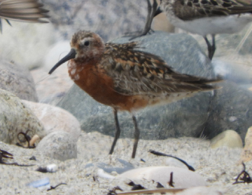 Thomas O'Brien encountered an unfamiliar shorebird at Third Cliff in Scituate on August 2, so he photographed it and shared his photos on Facebook. It turned out to be a Curlew Sandpiper. It stayed there for a few days to the enjoyment of many other birders. Brian Vigorito took the photo above.