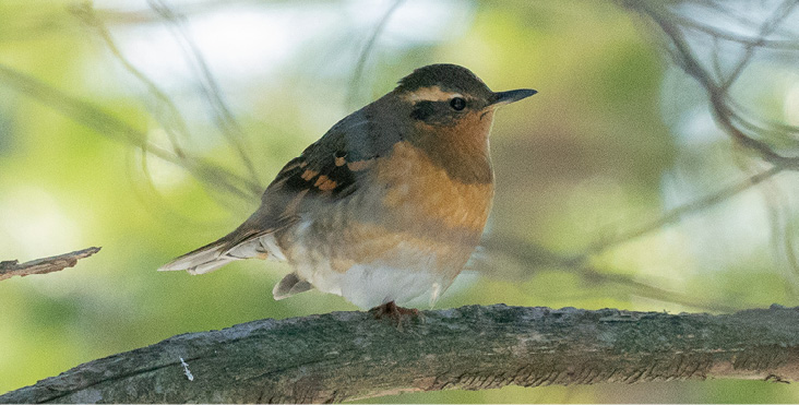 Figure 2. Varied Thrush post-altercation, resting in a nearby tree.