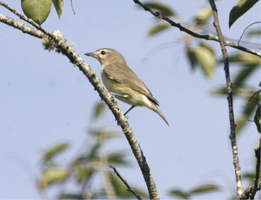 Let us methodically focus our identification efforts by concentrating on obvious or distinctive field marks. Does the bird appear to have wing bars? Does it have streaks on its underparts, flanks, or undertail coverts? The answer appears to be no to all these possibilities. Furthermore, does the head, crown, or face show any distinctive pattern or markings? Apart from a fairly thin, whitish eyebrow stripe that barely extends behind the eye, the bird’s head does not offer any conspicuous clues. The mystery bird appears to be notably plain, not just on the wings and underparts, but also on the head and face—areas on many species that usually provide helpful clues for identification. In essence, we are left with a nondescript bird that is practically without pattern. This fact, however, is important in unraveling the identity of this month’s mystery species. As usual, readers are encouraged to view the photograph of the mystery species on the Bird Observer website. In color the bird appears uniformly light olive on the back and wings, with a very subtle hint of light yellowish on its flanks and with otherwise unmarked underparts.