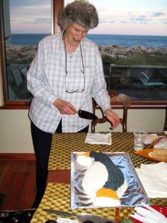 Dotty Brown cutting cake 2008. Photograph by George Loring.