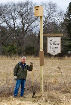 Steve Grinley with kestrel box. Photograph by Phil Brown.