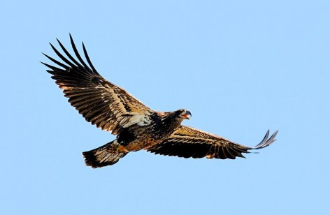 A young Bald Eagle recently fledged from a Massachusetts nest.