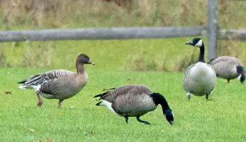 A decade ago, Massachusetts had only one record of Pink-footed Goose, which was considered questionable with regards to origin. Now the state hosts multiple individuals just about every winter. Phil Brown found this winter’s first in Ipswich on November 8. Phil’s photo of the bird among Canada Geese is above.