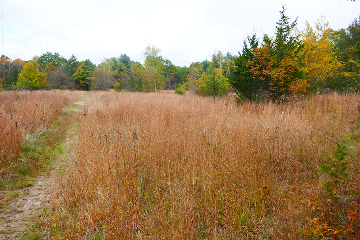 This field had become overgrown with white pine and other successional plants but has been restored by a joint effort of the city of Newton and volunteers. (The area had been rendered grassland in the 1950s as a Nike missile decoy site.) The bluestem grass is beautiful in the fall.