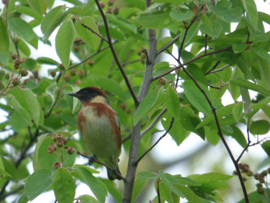 More than thirty species of warblers have been seen at Squaw Rock Park. May has the highest diversity, with Common Yellowthroats, American Redstarts, Northern Parulas, and Black-and-white, Magnolia, Yellow, Blackpoll, Black-throated Blue, Yellow-rumped, Black-throated Green, and Wilson's warblers among the most frequently encountered. Flycatchers such as Eastern Wood-Pewee, Least Flycatcher, Eastern Phoebe, Great Crested Flycatcher, and Eastern Kingbird are expected. Yellow-bellied and Alder flycatchers are rare but possible in late May through early June. Yellow-billed and Black-billed cuckoos, as well as Red-eyed, Blue-headed, Warbling, and Philadelphia (uncommon; September) vireos pass through, as do Golden-crowned and Ruby-crowned kinglets, and Hermit and Swainson's thrushes. During fall migration, be on the lookout for Field, Fox, White-crowned, White-throated, Lincoln's, and Swamp sparrows.