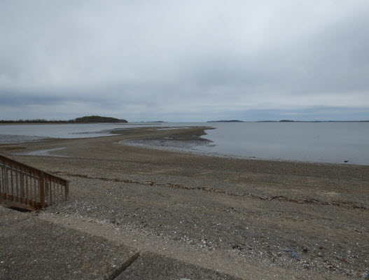 This small embayment has nice birds and views, but is best with morning light and on a lower tide when the mudflats and sand spit are exposed. A spotting scope is useful for scrutinizing shorebirds and waterfowl. American Oystercatchers—local breeders—and Black-bellied Plovers frequent the sand spit, as do Laughing Gulls between July and October. The spit is one of a few places in the area to try for Caspian Terns in September. Semipalmated Plovers, Least and Semipalmated sandpipers, and Greater Yellowlegs regularly feed on the mudflats. Less common shorebirds such as Ruddy Turnstones, Sanderlings, Dunlins (October), White-rumped Sandpipers, Pectoral Sandpipers, Western Sandpipers (rare), Short-billed Dowitchers, and Willets round out the possibilities. Common and Least terns feed along this stretch of water during the summer months. Keep an eye out for Black Skimmers, which are rare but can occur in some years. It is thought that juvenile birds disperse from breeding grounds to the south and feed in these shallow bays in late summer. Black-headed Gull and Red Knot are a couple of rarities that have shown up in recent years.