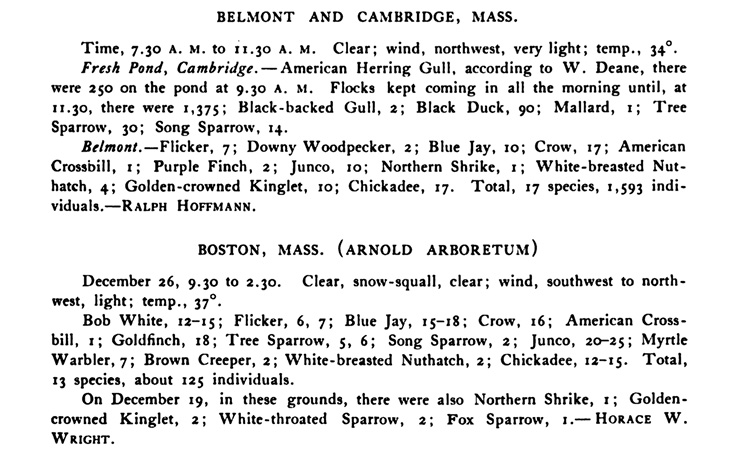 Sightings from the 1900 Christmas Bird Census. Bird-Lore, January-February 1901.