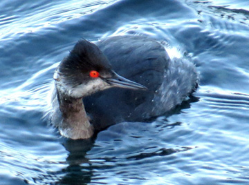 US Fish & Wildlife Service biologists Scott Schwenk and Roxanne Bogart spent New Year’s Day in Provincetown, and were rewarded with an Eared Grebe swimming practically right under their noses at MacMillan Wharf. The bird is still being reported as this issue goes to press, more than two weeks later. Scott Schwenk took the photo above.