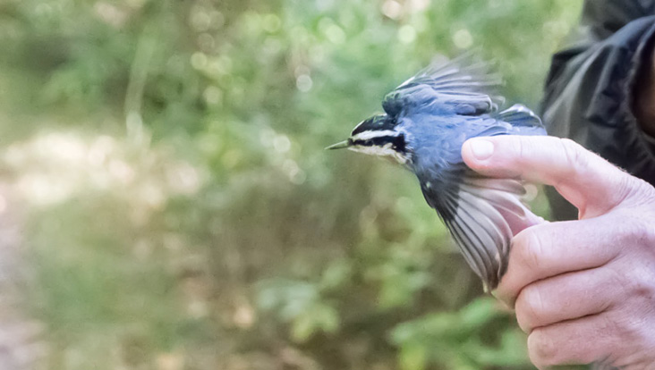 A Red-breasted Nuthatch being released after banding.