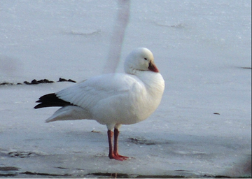 A Ross’ Goose, standing on the ice on the Lower Millpond in Easthampton, was photographed on March 14 by Scott Rasmussen (his photo above). After a couple of days there, Sean Williams spotted it flying over the East Meadows of Northampton among thousands of other geese including a Cackling, a White-fronted, and nearly 90 Snow; that was the last time anyone saw it in the area.