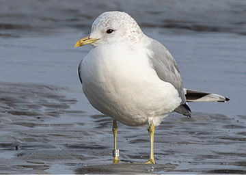 Massachusetts harbored at least four Mew Gulls this winter. A banded bird of the European subspecies and an unbanded one of the Asian subspecies showed up at their usual winter haunts in southeastern Essex County. Jan Smith and Lynn Ferraresso spotted the first one January 18 at Lynn Beach, and Andy Sanford noticed both of them together January 31 at King’s Beach. One or the other continued through February 23, including one appearance out in Nahant. In the meantime, Joel and Matthew Eckerson found another European “Common” Gull on January 20 at Gooseberry Neck, and Matthew Sweet picked up a Mew of uncertain subspecies at Lake Massapoag on February 3. Neil Dowling took the photo of the Common Gull above.
