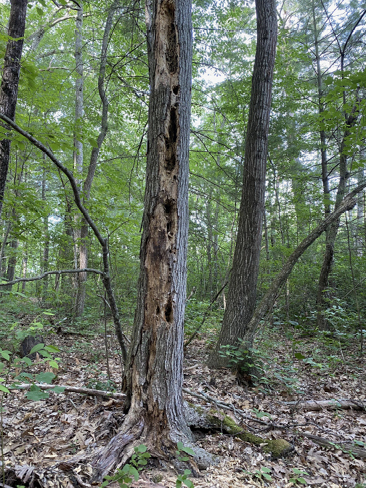 Fig. 5. Pileated Woodpecker excavations are recent here, judging by the fresh wood chips around the base of the tree. Photograph by Marsha C. Salett.