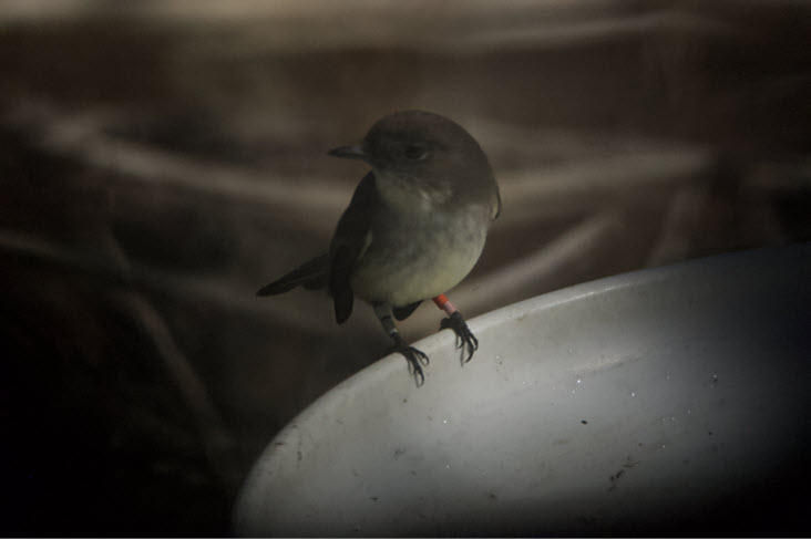 Fig. 2. Eastern Phoebe with unique combination of colored bands. Photograph by Joshua Rose.