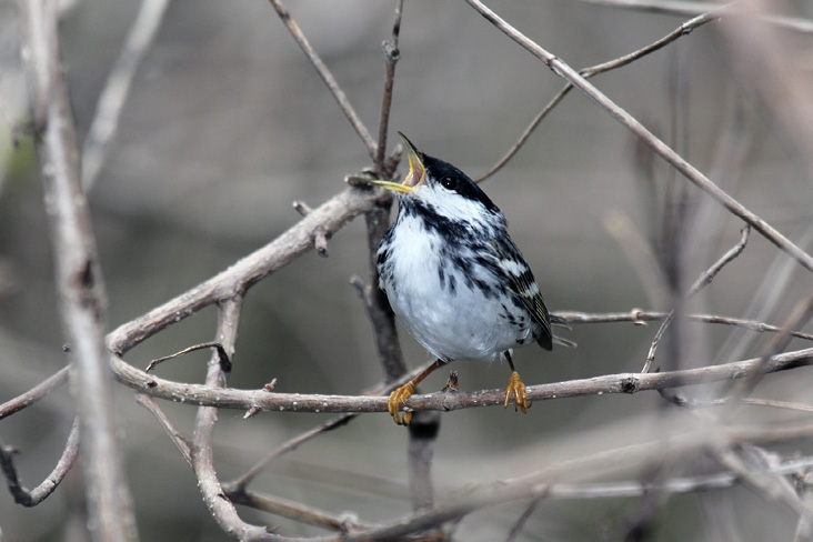 Blackpoll Warblers sing in a narrow range above 7 kHz. Photograph by "WarblerLady." (CC BY-ND 2.0.