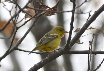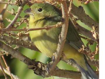 At the same time that the two Townsend’s Solitaires and the first of the seven Painted Buntings showed up, so did the first of at least five Western Tanagers! As with the buntings, most of the birds were visiting feeders in private yards, some of which did not allow visitors. Birders did manage to catch up with a couple of them, including one at Gloucester’s Eastern Point Wildlife Sanctuary. Suzanne Sullivan took the photo on the left.