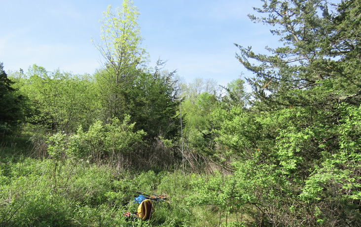 On any given day between mid-May and the end of June, you can best hear winged-warblers during the dawn chorus, which ranges from about 30 minutes before sunrise to three to four hours after sunrise. However, winged-warblers have been detected as early as 4:00 am and as late as 8:30 pm, so if you are running behind schedule it is not impossible to find them later in the day. Regardless of time of day, ticks, mosquitoes, and black flies are ubiquitous across the northern Champlain Valley May through July, so pant legs tucked into socks and insect repellent are recommended at all four sites.