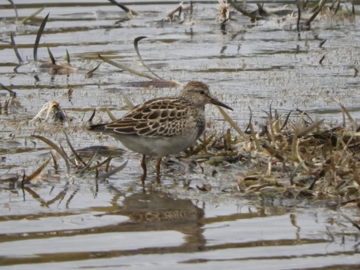 Tubbs Meadow tends to be at its best in the spring, but it can also be worth a visit at other times of year. In late summer and early fall, the ponds can dry up, leaving a lot of exposed mudflats that attract Pectoral Sandpiper, Least Sandpiper, and other shorebirds. Later in the fall, various sparrows can be found in the sandy area, and dabbling ducks arrive on the ponds.