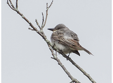 Gray Kingbird (Tyrannus dominicensis). A bird seen briefly was fortuitously photographed at Brunswick, Cumberland, October 12, 2020 (Gordon Smith†*; 2020-040), providing Maine’s second indisputable record.