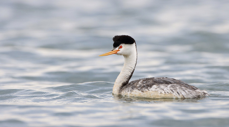 New England’s second Clark’s Grebe was approachable by kayak during its stay on Togus Pond, Augusta, August 8–15, 2020. Photograph August 9, 2020, by Luke Seitz.