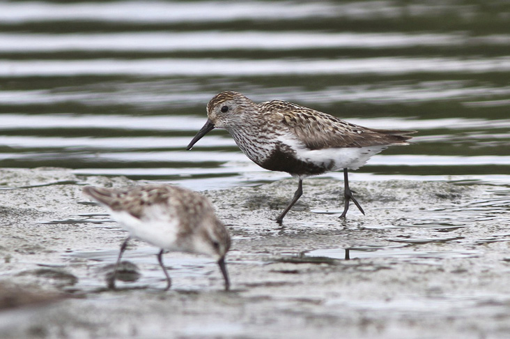 Dunlin (Greenland Dunlin) (Calidris alpina arctica). Popham Beach State Park, Sagadahoc, August 8–13, 2015 (Mike Fahay*†, Bruce Pickholtz†, Doug Suitor*; Doug Hitchcox†; 2015-011). Although two birds were reported, examination of photographs submitted by Pickholtz proved only one bird was involved based on matching details of plumage. This is the first report for Maine of this small, short-billed subspecies, and one of only a handful documented in North America. Unlike the expected subspecies C. a. hudsonia, adults of which molt into basic plumage prior to southward migration, C. a. arctica and affiliated European subspecies molt after arrival on the wintering grounds. An earlier report from Popham Beach on July 21, 2013, not submitted to the committee , may also represent C. a. arctica; the single photograph shows an alternate-plumaged individual that appears to lack rufous upperparts, but the bill is not visible.