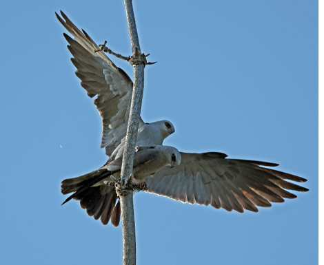 Mississippi Kites copulating. Photograph by Deb Powers.