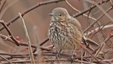 On December 13, Theresa Gessing photographed a Sage Thrasher near Great Pond in Hatfield. Subsequent birders have found it in the same location through press time. Bizarrely, there were two others just outside of our state this fall and winter. Another Sage Thrasher spent the first half of November in a conservation area in eastern New York state, about 65 miles west of Hatfield. The third was found in the Hinsdale Setbacks of New Hampshire, about 35 miles north of Hatfield, during the Brattleboro CBC and, like the Massachusetts bird, is still present at the time of this writing. Julie Blue took the photo above.