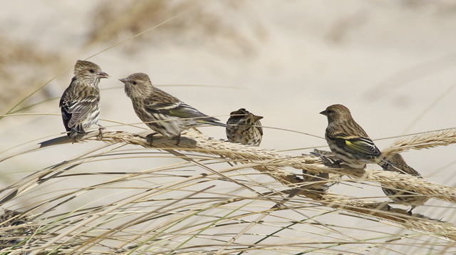 Pine Siskins, which alighted on the island by the hundreds this fall, began arriving as early as September.