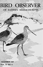 First spotted in Chatham and later on Martha’s Vineyard, this dark morph adult Ferruginous Hawk successfully wintered in Massachusetts without succumbing to bird flu despite being seen depredating dead eiders and other waterfowl. The very long gape extending past the rear of the eye confirms this species and eliminates other dark Buteos. Photograph by Chris Kurylowicz.